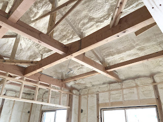 まずは断熱材の吹付工事が行われたK様邸🌱 浴室の床下までみっちりと吹かれています😊