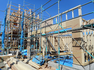 大工さんたちカッパを着て頑張ってくれました💦 前日と打って変わって寒い中ありがとうございました🙏✨
