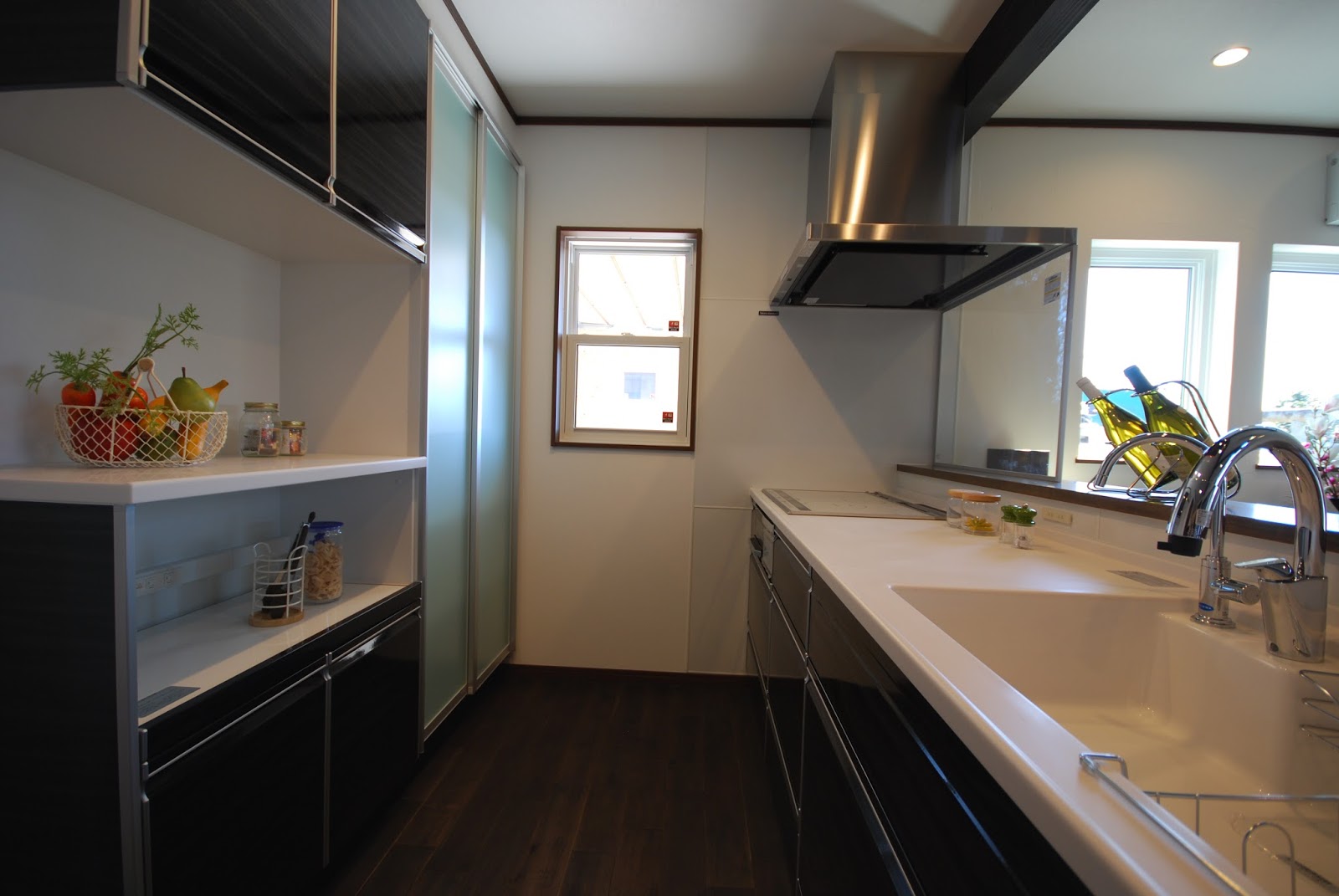 レンジフードの下はガラスパーテーションで仕切っており、とても開放感があります。