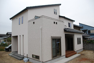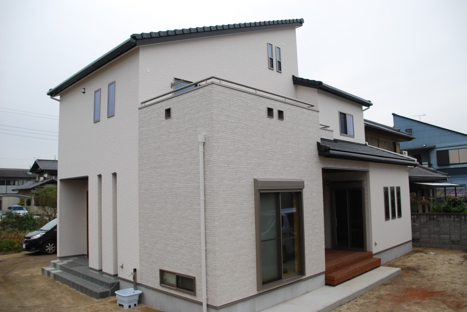 | ウリンのウッドデッキが白い外観のアクセントに。 |