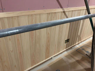 ヒノキの腰板が貼ってありました😊